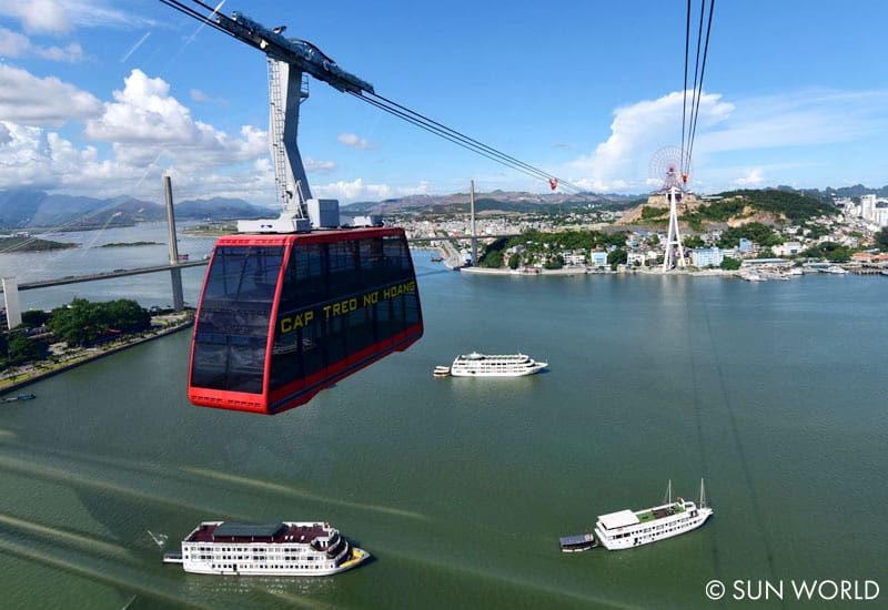 This is indeed a very attractive point of Halong. The cable car in Halong achieved 2 world records. It is the highest cable car pole at 100m and the cabin can accommodate the most people at one time (230 people). From the cable car you can see everything about Halong Bay.