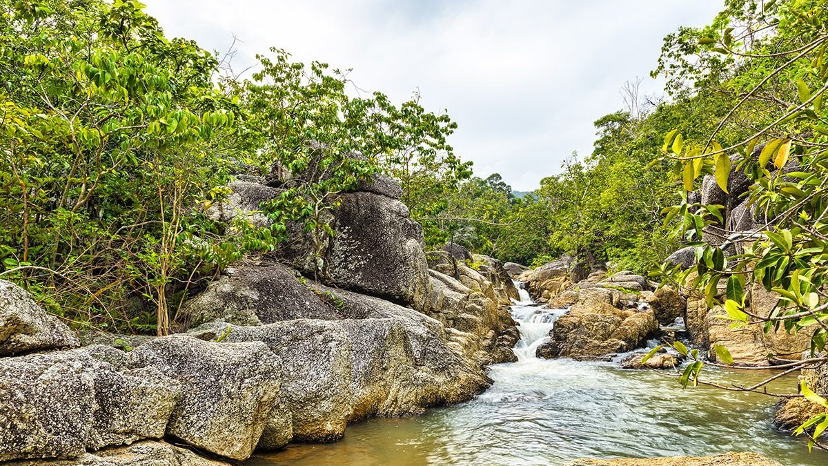 The park’s most well-known feature is a 2.5-kilometer section of stream with numerous tiny waterfalls. Starting at the top of the series of waterfalls from Wat Thong Nang near the King Rama V Memorial Statue near the roundabout at the start of the newly built concrete road down to Than Sadet Beach, the adventurous traveler with time to spare could start at the top of the series of waterfalls from Wat Thong Nang near the King Rama V Memorial Statue near the roundabout at the start of the newly built concrete road down to Than Sadet Beach. Before the statue, there is a small road to the spartan Wat Thong Nang temple, and there are steps down to the stream and one of the first waterfalls if you walk to the far end of the big rock upon which the Ordination Hall is erected.