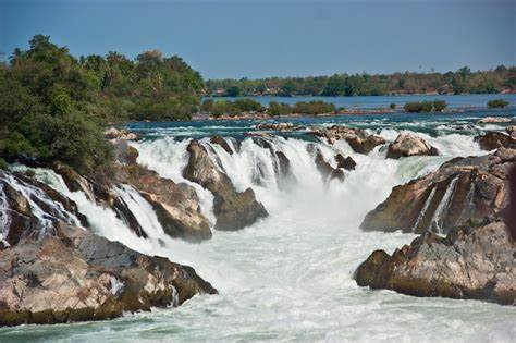 The falls, also known as Khone Phapheng, are found in the Si Phan Don region, which means “four thousand islands” in Thai. The Mekong river widens at this point; during the wet season, the river and sequence of waterfalls are kilometers wide and stretch for about 10 kilometers downstream.